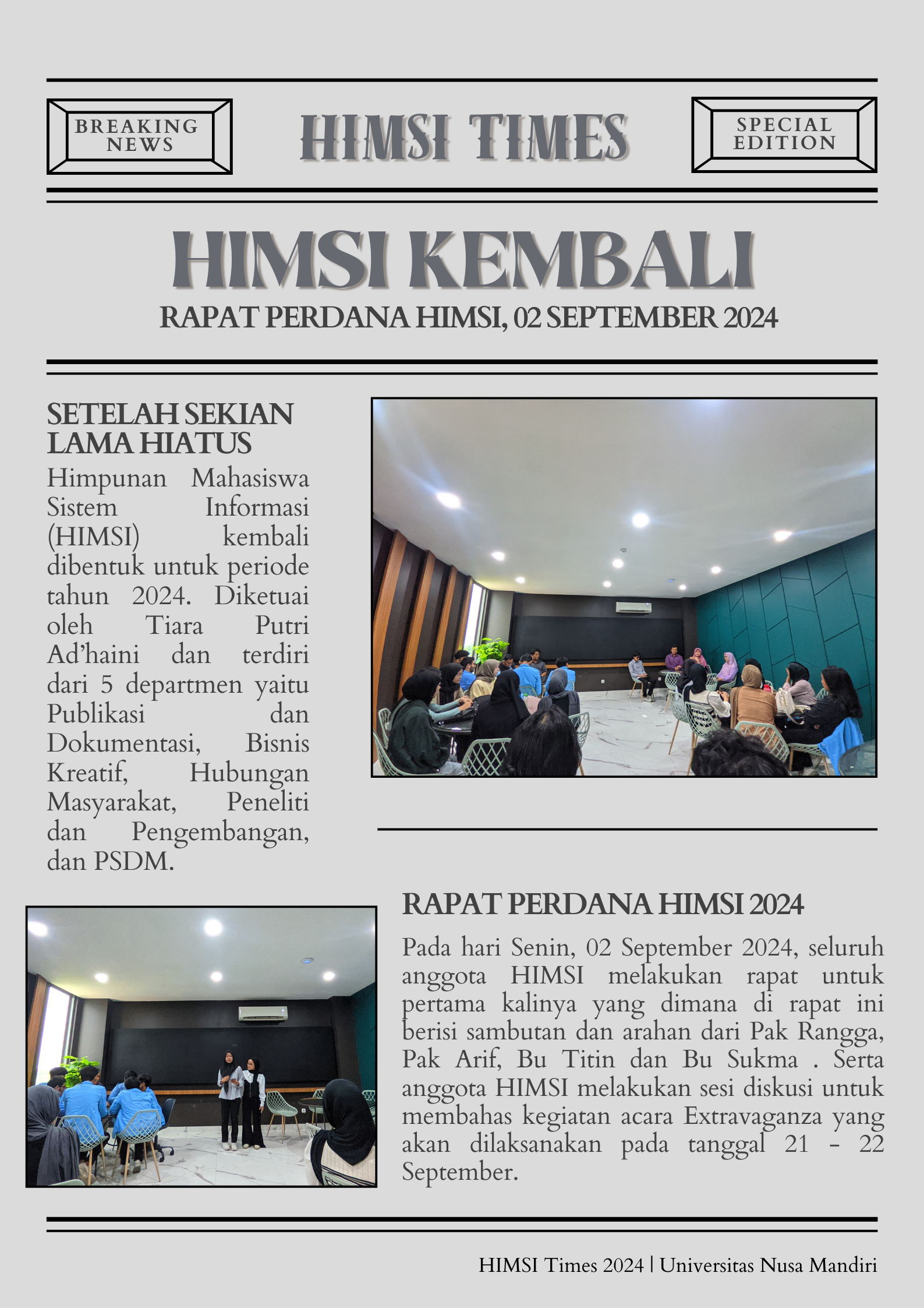 Hai, Selamat datang di website resmi Himpunan Mahasiswa Sistem Informasi (HIMSI) Universitas Nusa Mandiri! 🎉